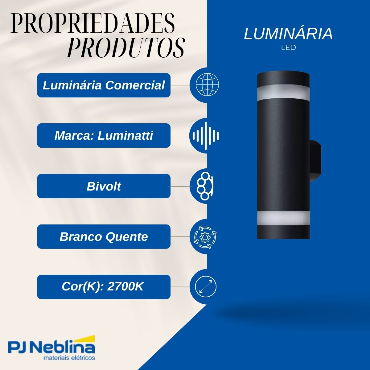 - Fluxo luminoso de 1600 lúmens.
