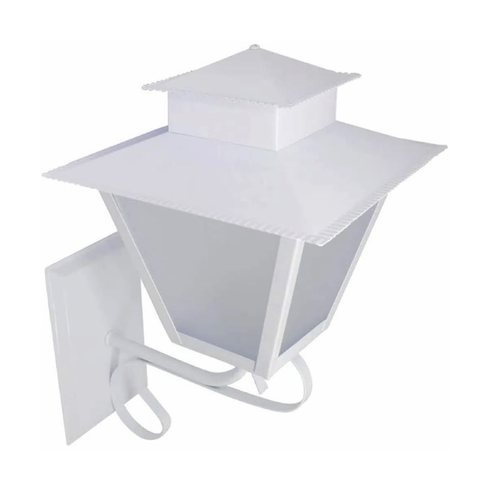 Luminária Arandela Para Jardim Retangular Em Aço Branco 20W E27 Difusor Vidro L-7-b Colonial - Ideal Iluminação