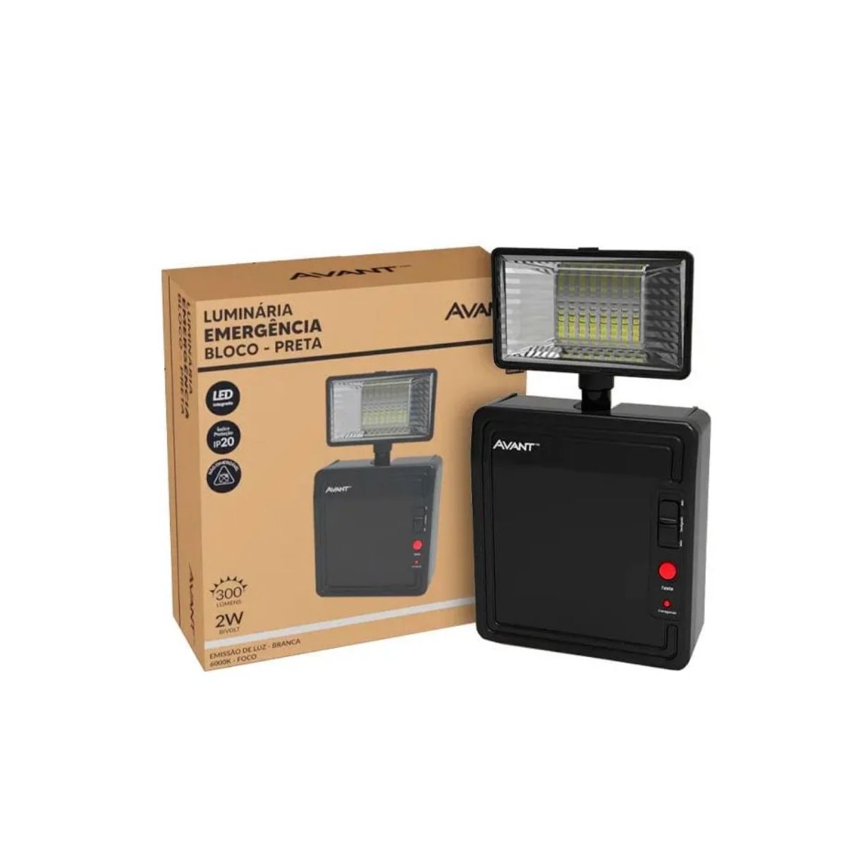 Luminária Emergência Led 1 Farol Sobrepor 2W Bivolt 6000K Branco Frio 300Lm 4H Ip20 Preto - Avant - Código Fabricante: 354011374