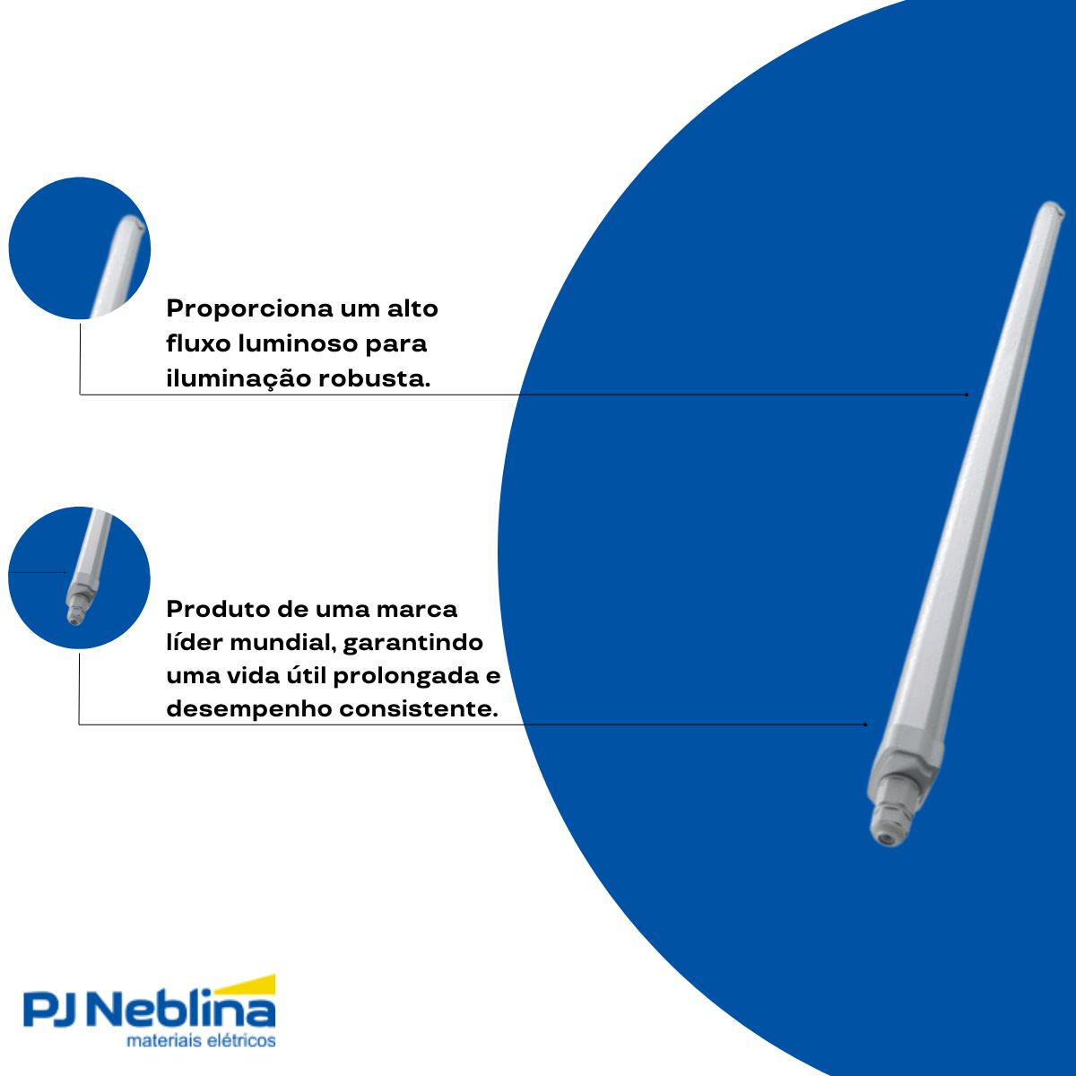 Fluxo luminoso de 4800 Lumens, garantindo excelente iluminação para grandes espaços.