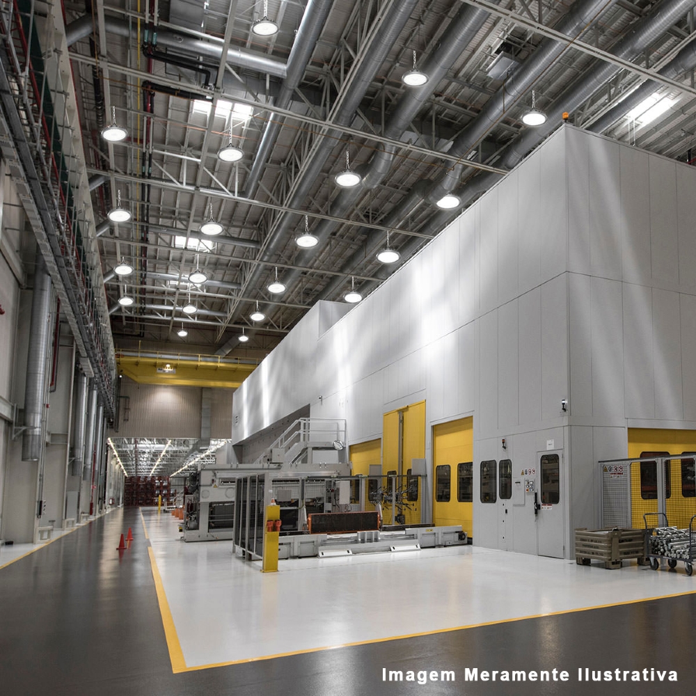Luminária Industrial Highbay Led Sobrepor Preto 78W 220/240V 6500K Luz Branca 10500Lm Difusor Policarbonato Facho Aberto Com Gancho Fixação/Driver Essential Led Philips