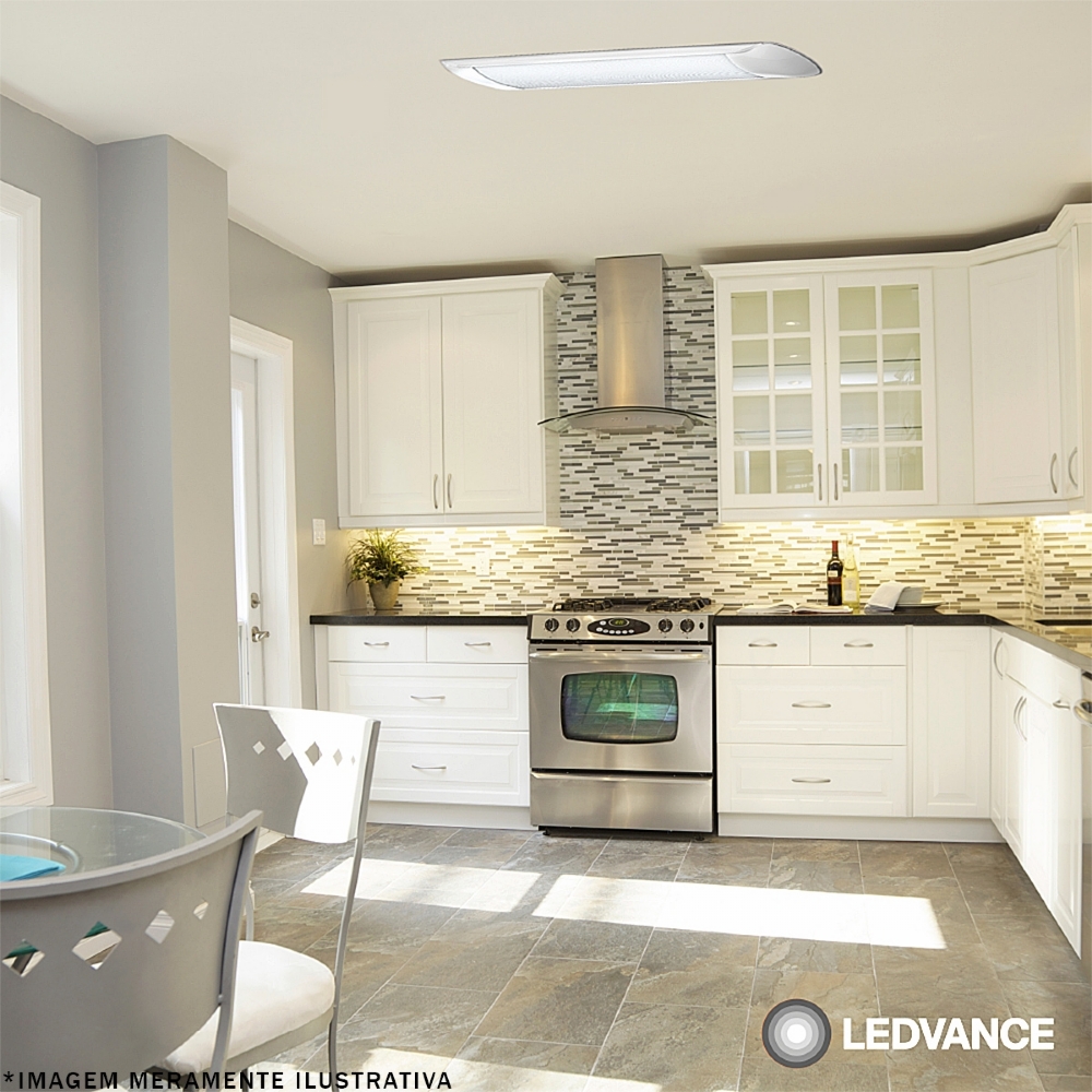 Luminária para teto de sobrepor do tipo linear, com design moderno e fácil de limpar. É equipada com LED de alta potência de luz branca, que ilumina o ambiente de maneira uniforme. Instalação rápida e fácil. Disponível nas versões longa e curta. Ideal para substituir luminárias tipo calha equipadas com lâmpadas fluorescentes tubulares.