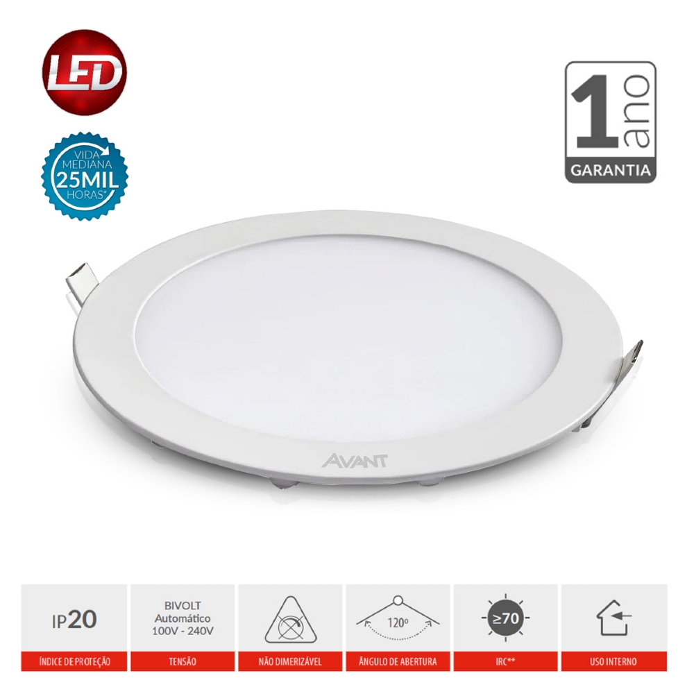 Luminária Painel Led De Embutir Redondo 18W Bivolt 6500K Luz Branca Avant