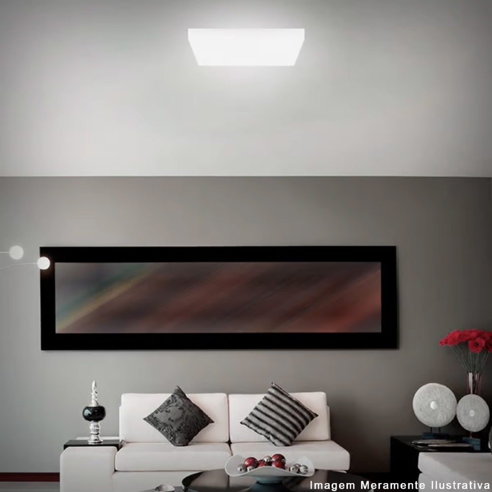 - Difusor moldado em crílico com alta refração luminosa, proporcionando uma iluminação uniforme e homogênea.