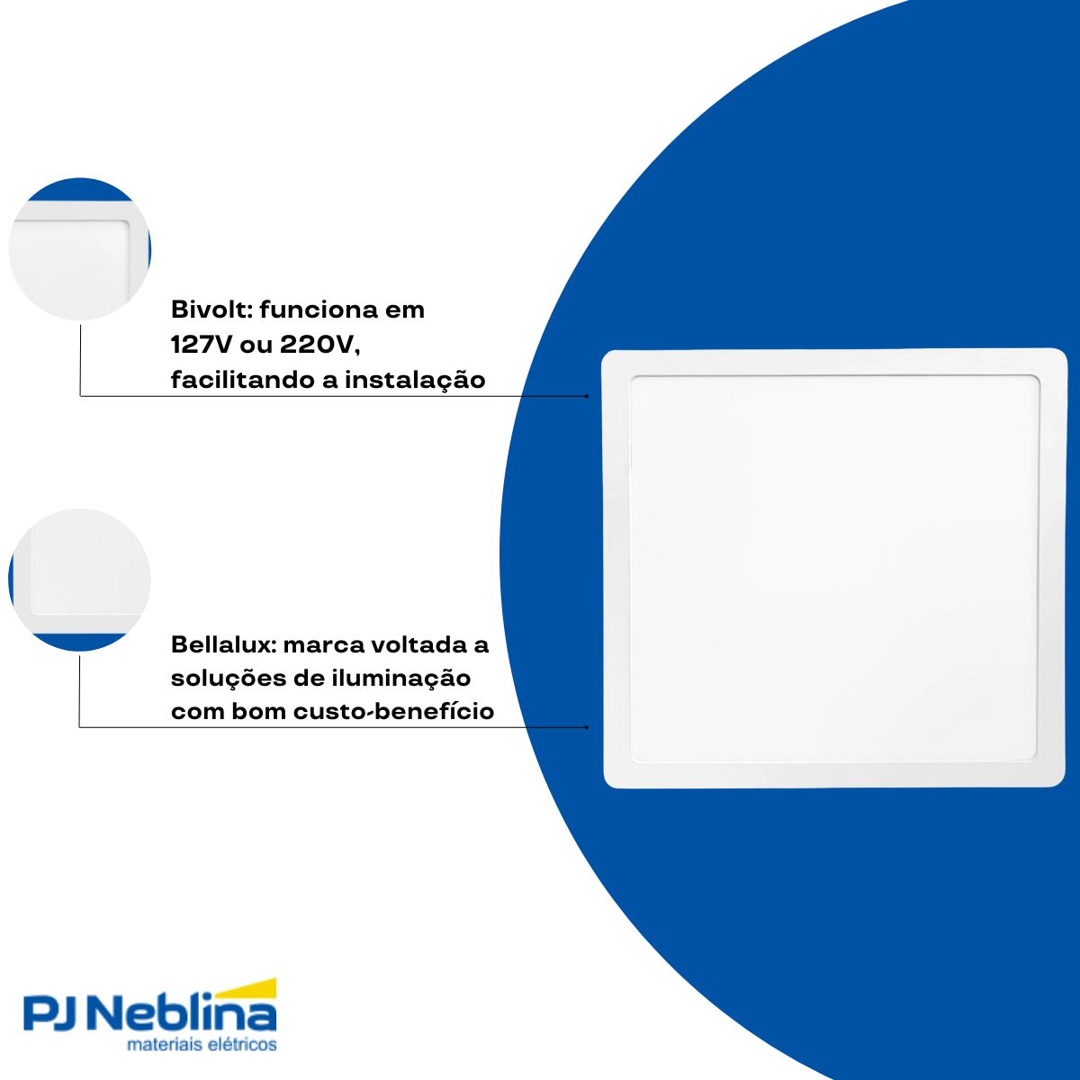 Luminária Painel Led Embutir Quadrado Branco 36W Bivolt 6500K Branco Frio 2880Lm Difusor Poliestireno - Bellalux - Código Fabricante: 7023322