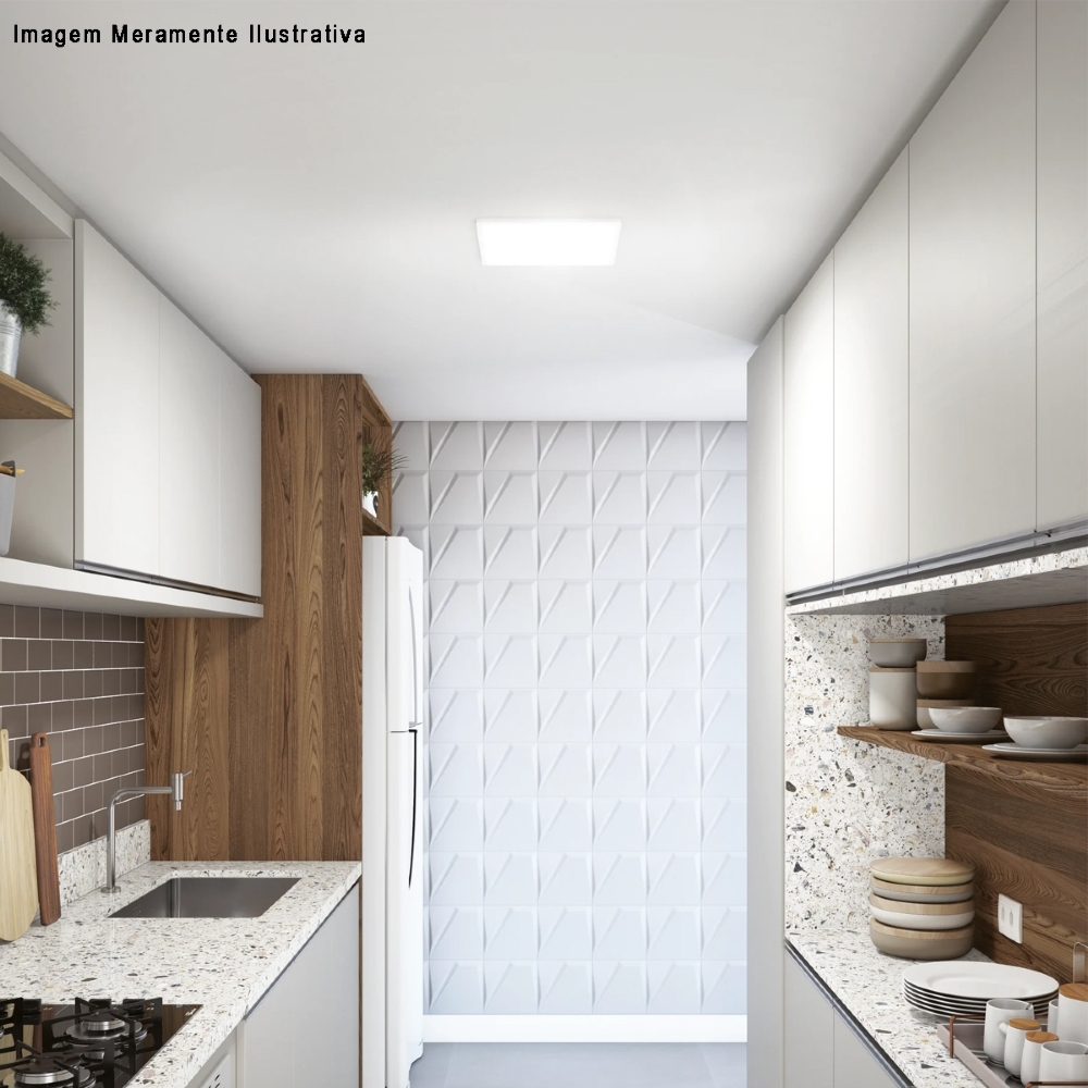 Painel de embutir Slim Led quadrado, fabricado em metal, acabamento na cor preta, difusor em acrílico e driver bivolt incluso.