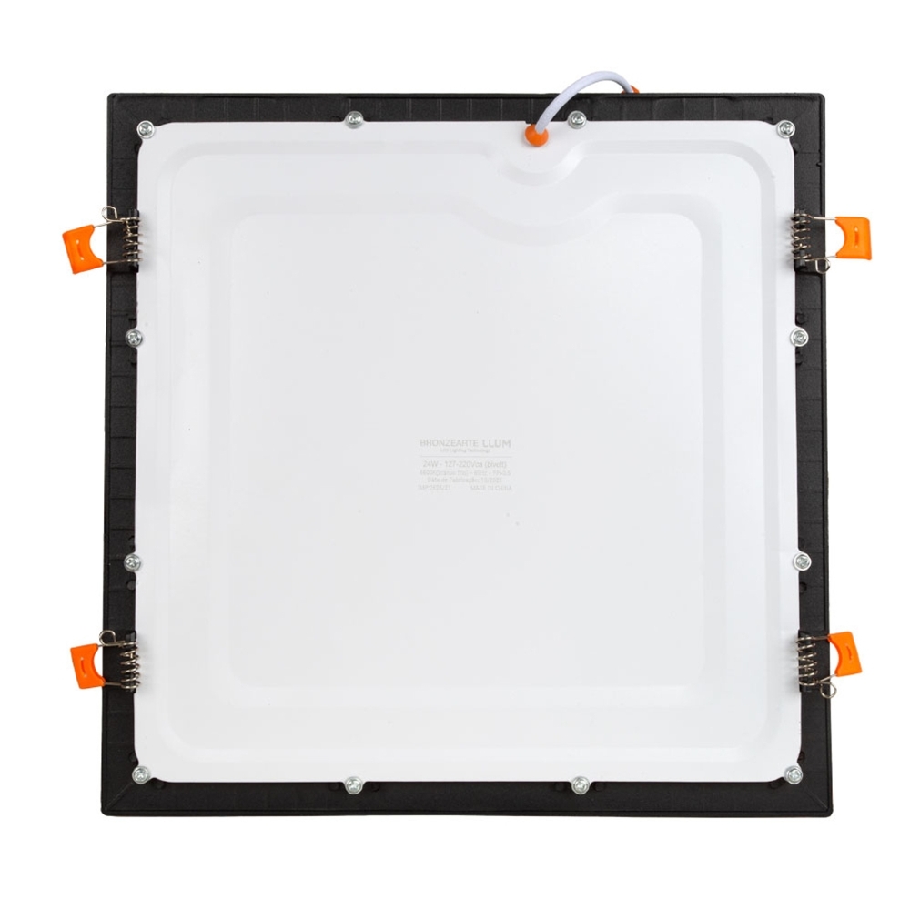 Luminária Painel Led Embutir Quadrado Preto 24W Bivolt 6500K Branco Frio 2040Lm Difusor Acrílico Bronzearte