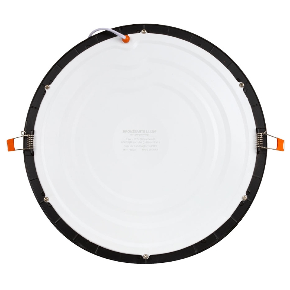 Luminária Painel Led Embutir Redondo Preto 24W Bivolt 6500K Luz Branca 2040Lm Bronzearte