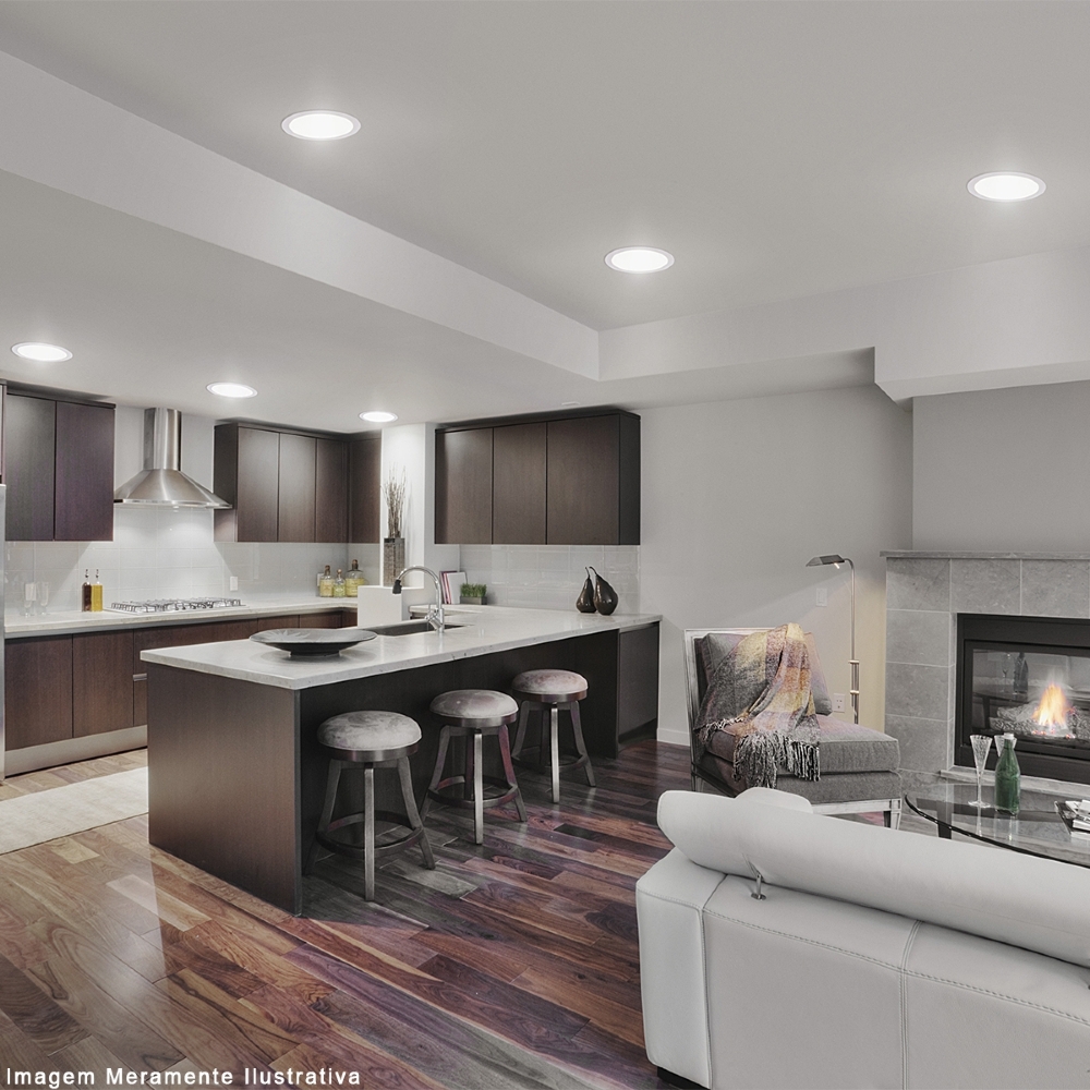 Luminária Plafon LED Embutir Redondo Branco 18W 6500K Luz Branca Bronzearte