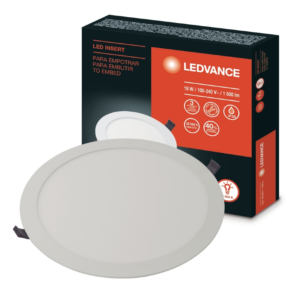 Luminária Painel Led Insert Redondo Embutir 18W Bivolt 4000K Luz Branca Ledvance
