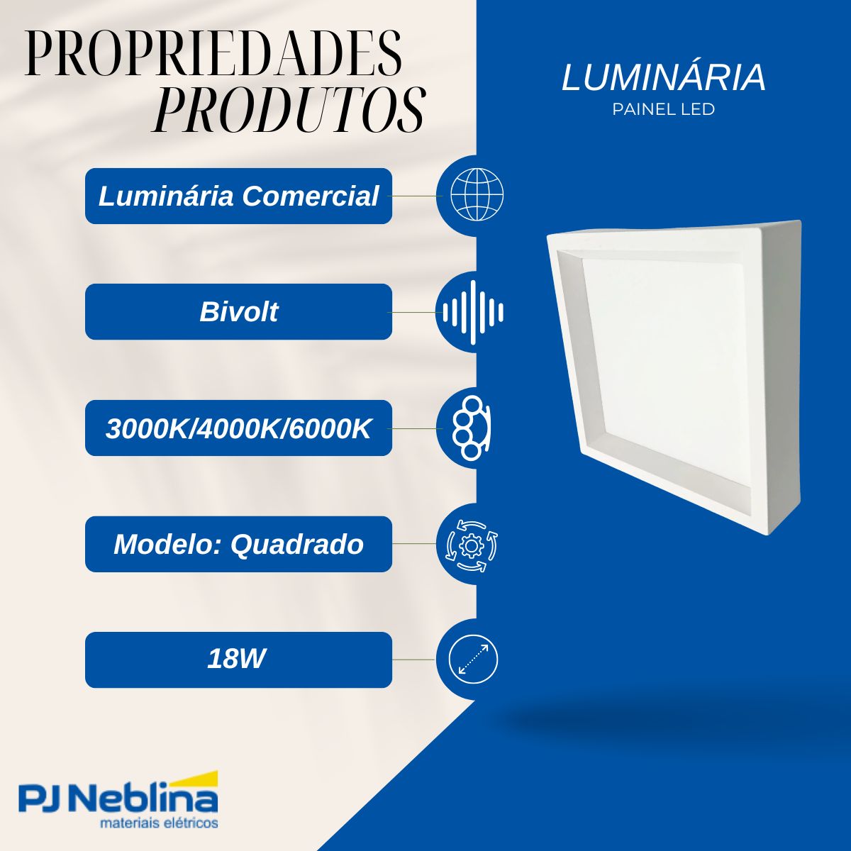 Luminaria Painel Led Sobrepor Quad Bc 18w Bivolt 3000k/4000k