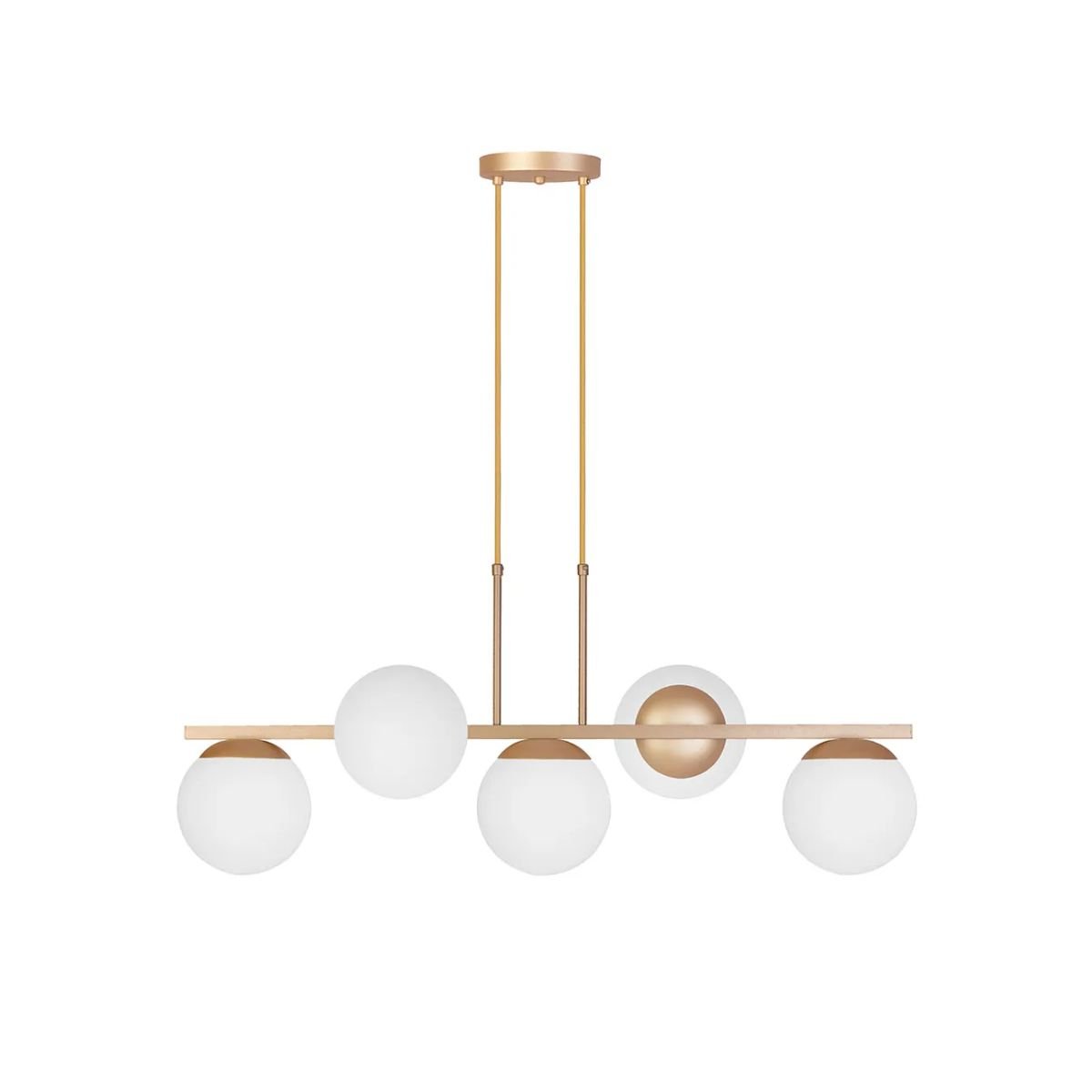 Luminaria Comercial | Tipo: Pendente | Modelo: Hanover | Material Corpo: Aluminio | Cor Corpo: Champanhe/dourado | Base: 5xe27 | Difusor: Globo Fosco | Dimensoes: 150mm | Marca: Kin Light | Referencia: Pd157/5drch | Linha Fabr.: Linha Hanover