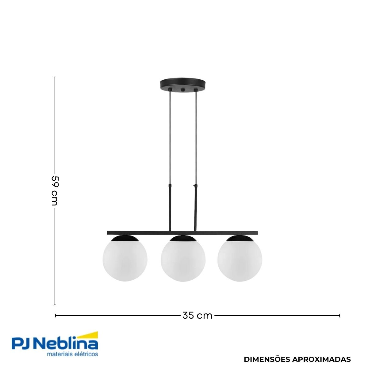 Luminaria Comercial | Tipo: Pendente | Modelo: Hanover | Material Corpo: Aluminio | Cor Corpo: Pt | Base: 3xe27 | Difusor: Globo Fosco | Dimensoes: 150mm | Marca: Kin Light | Referencia: Pd157/3pt | Linha Fabr.: Linha Hanover