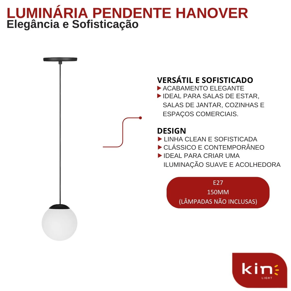 Luminária Pendente Hanover Preto Globo Fosco - Kin Light