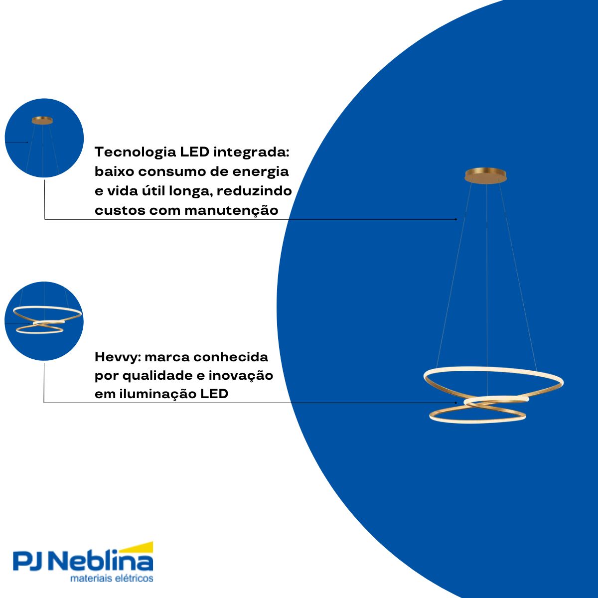 Luminária Pendente Led Horizon Snail Dourado 60W Bivolt 3000K Branco Quente 3200Lm - Hevvy - Código Fabricante: 1438