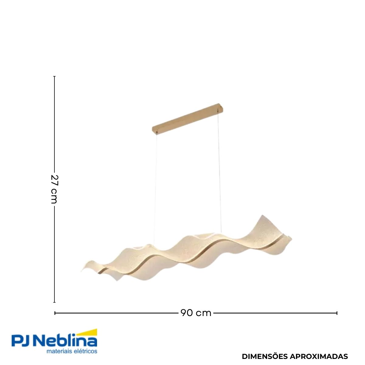 Luminária Pendente Led Sobrepor Wave Dourado 24W Bivolt 3000K Branco Quente 1880Lm - Hevvy - Código Fabricante: PZ-149/90HL1 GD