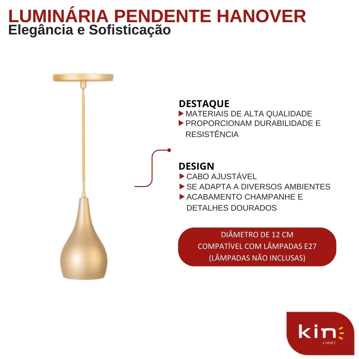 • Estilo Contemporâneo: Seu formato pendente e a combinação de cores sofisticadas se encaixam bem em ambientes modernos e requintados.