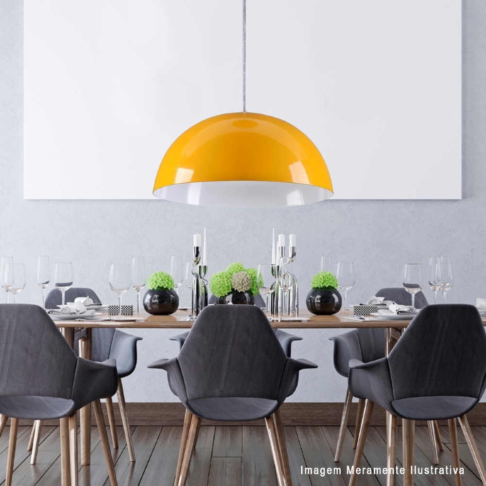 Luminária Pendente De Teto Redondo Amarelo/Branco 60w E27 Em Alumínio 105 Am B - Ty Iluminação