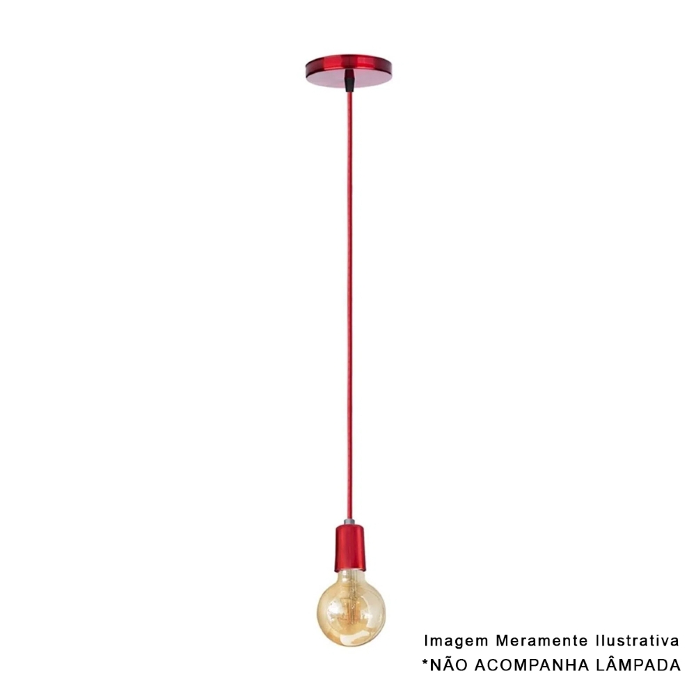 Luminária Comercial Pendente Soquete Tecido Vermelho E27 13157 1260x45mm Zani