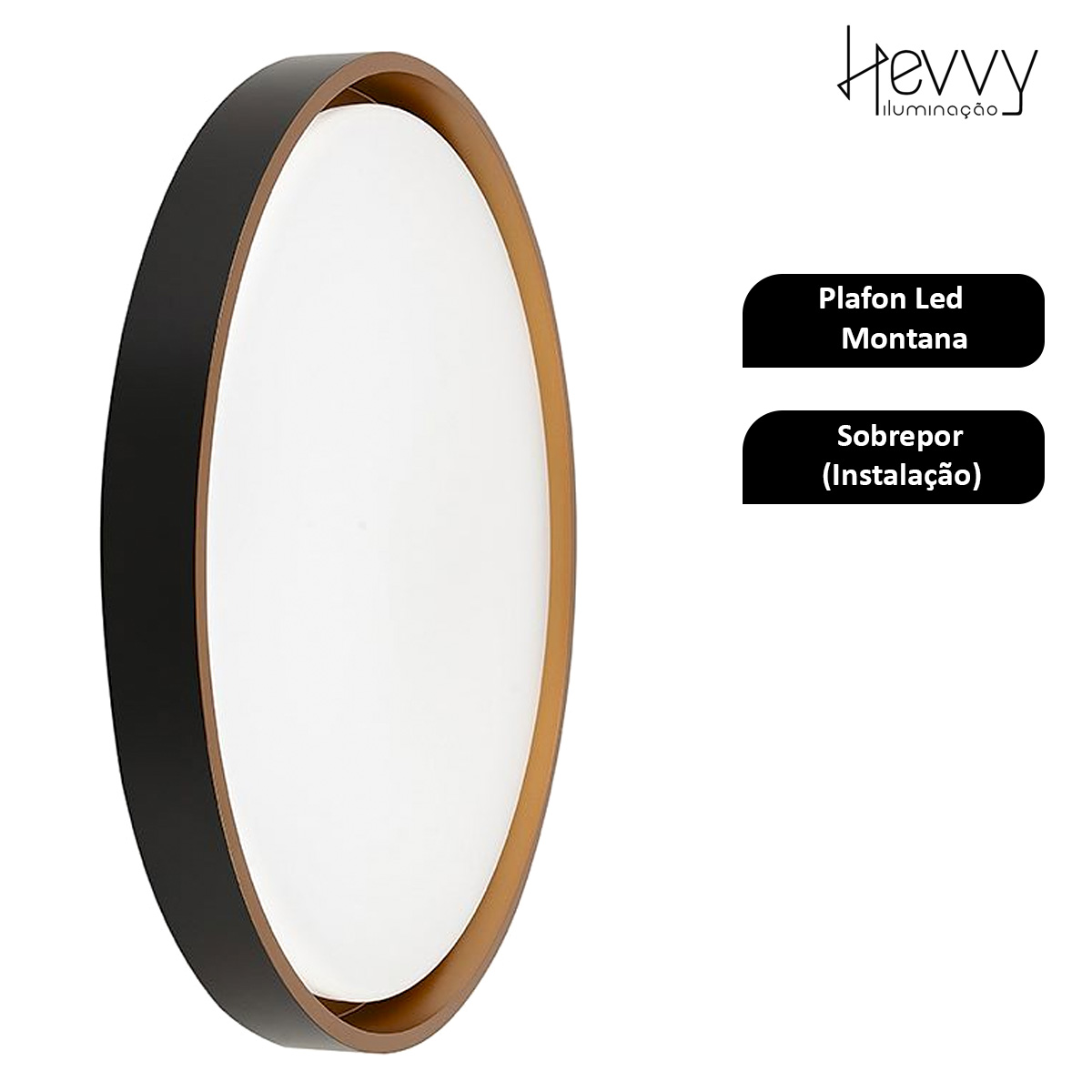 Luminária Plafon Led Sobrepor Montana Preto/Dourado 48/96W Bivolt 3000K/4000K/6000K Luz Amarela/Neutra/Branca 3840Lm Hevvy