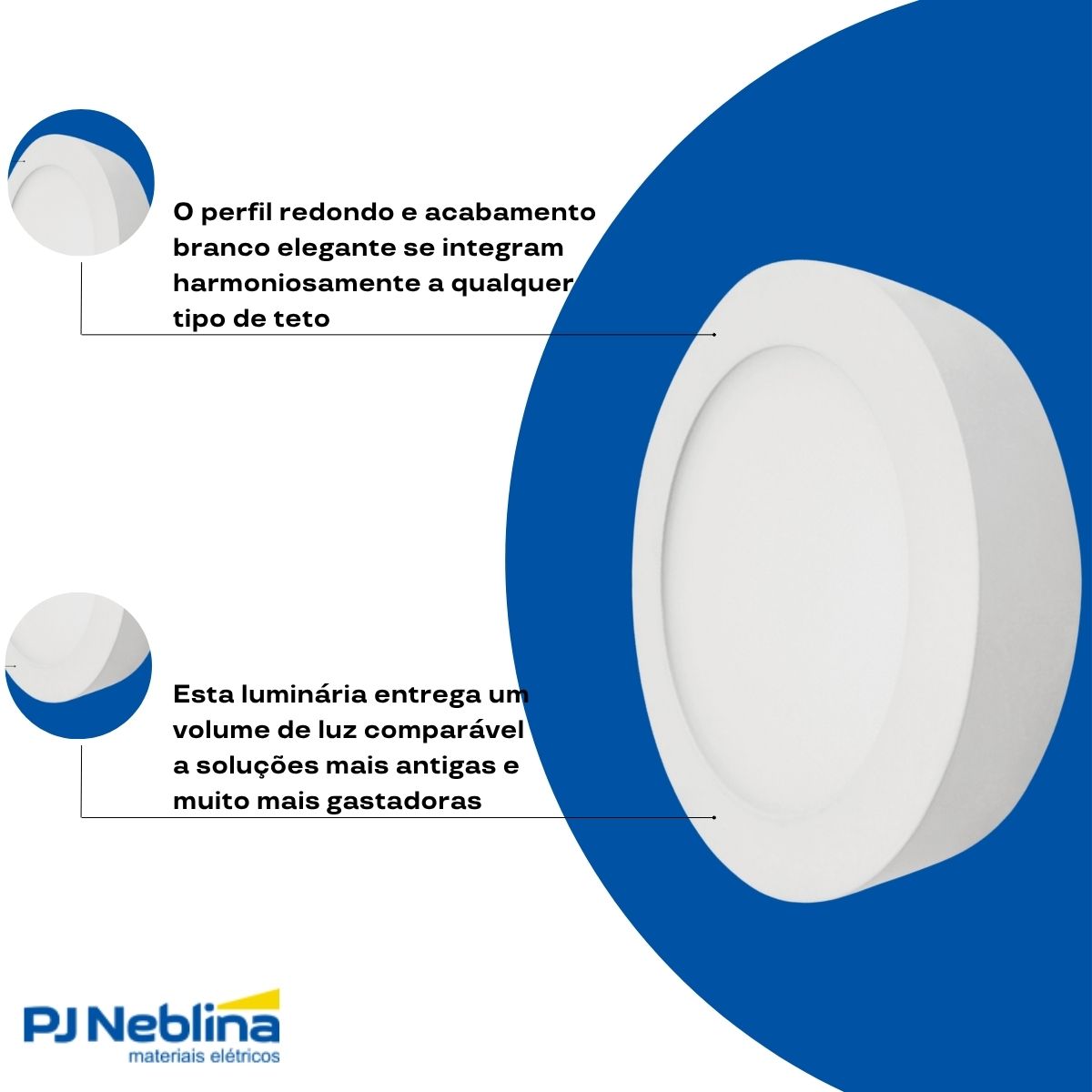 - Potência de 12 Watts, proporcionando 720 lúmens de fluxo luminoso.