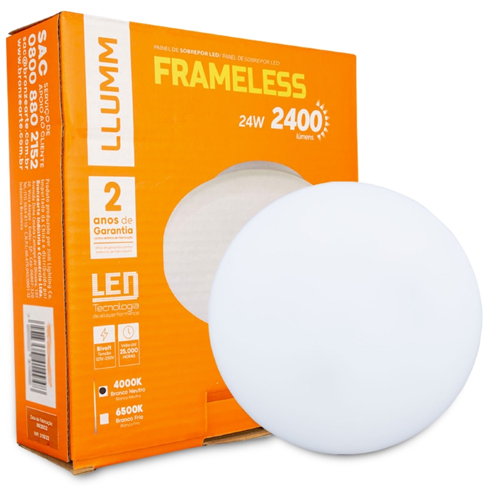 Luminária Plafon Led Sobrepor Redondo Branco 24W Bivolt 50/60Hz 180G 4000K Luz Branca 2400Lm 170mm 25000H Ip20 Frameless Bronzearte