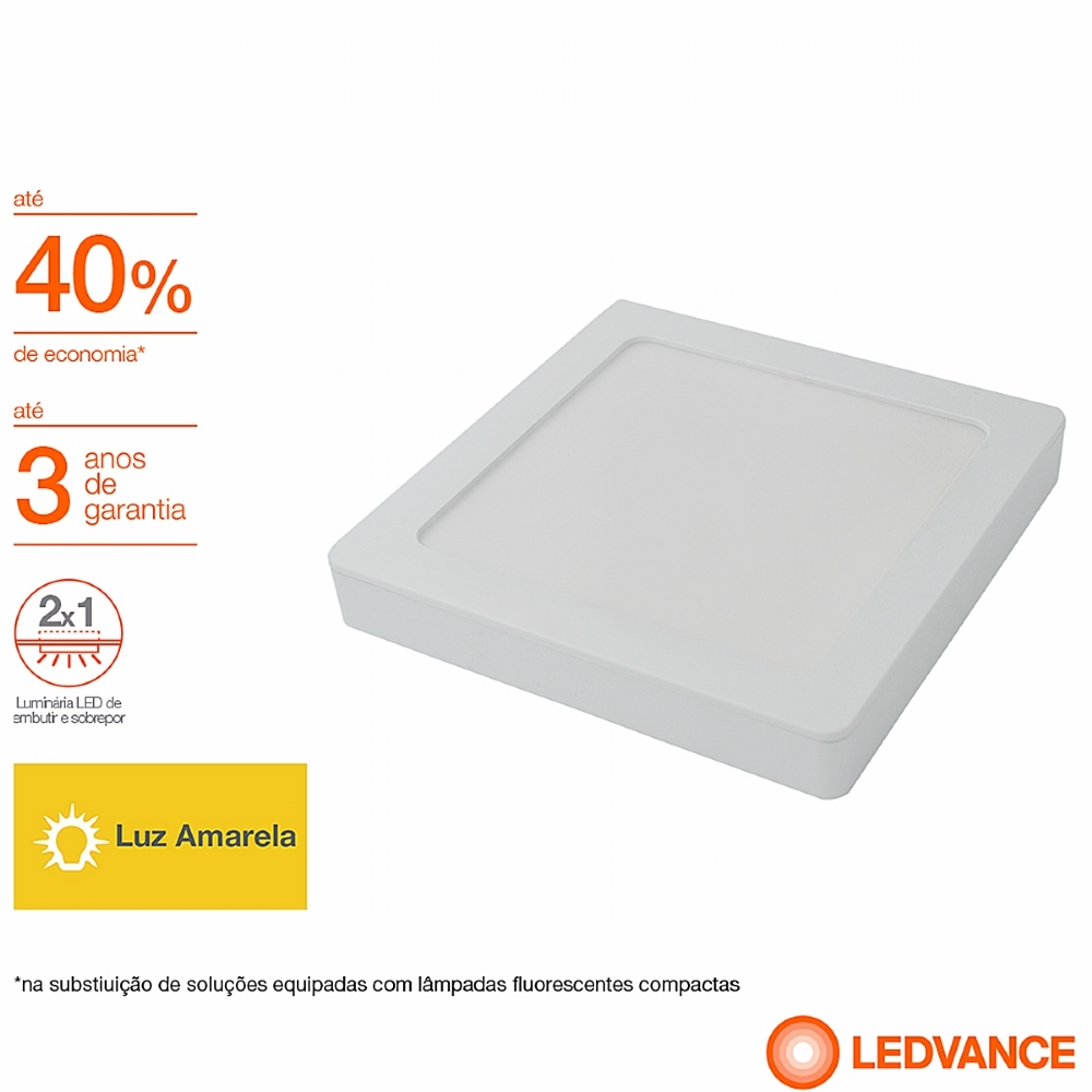 Luminária Plafon Slim Led Quadrado 24W Bivolt 3000K Luz Amarela Ledvance