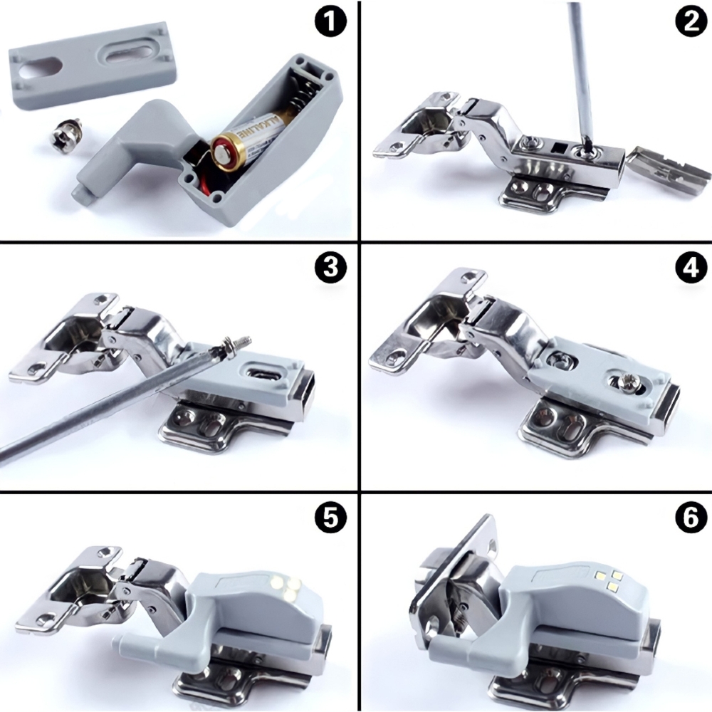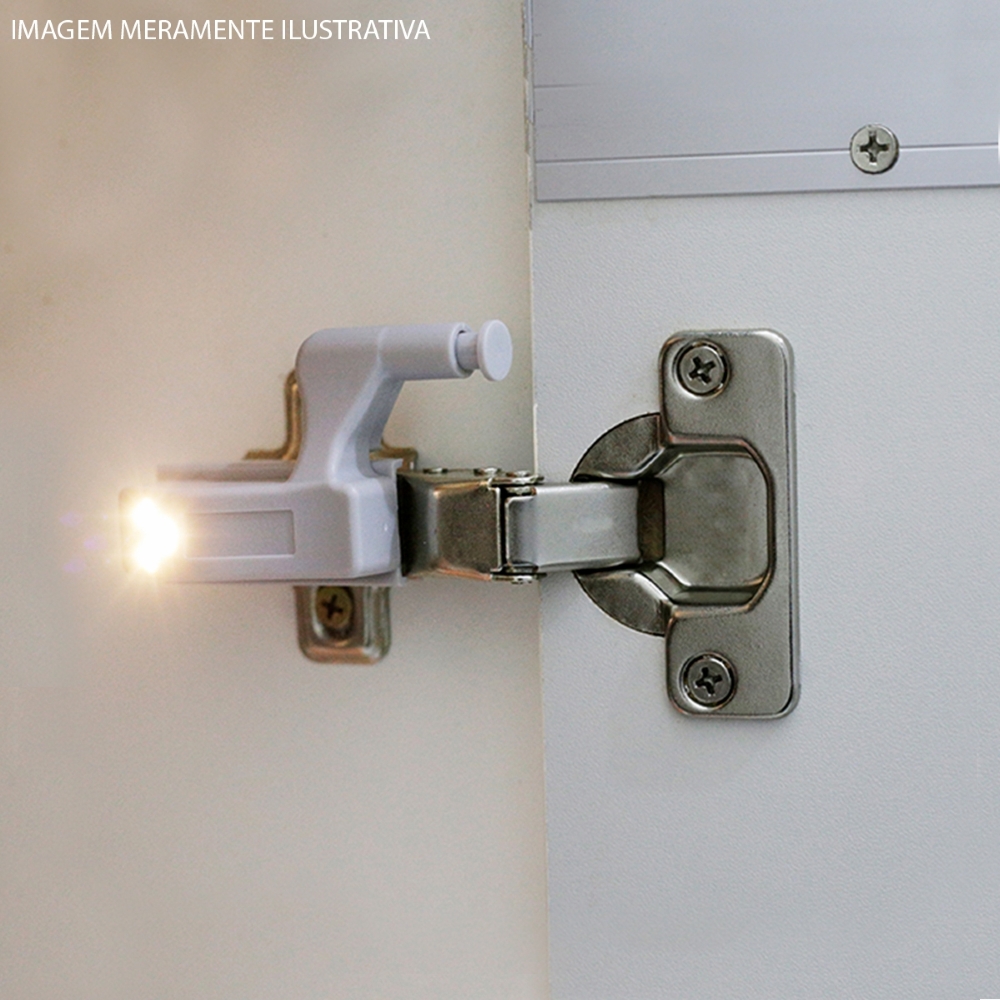 Kit 2 Luminárias Led De Dobradiças Switch Light Para Armário Mini Cinza 12V 3000K Luz Amarela Bronzearte