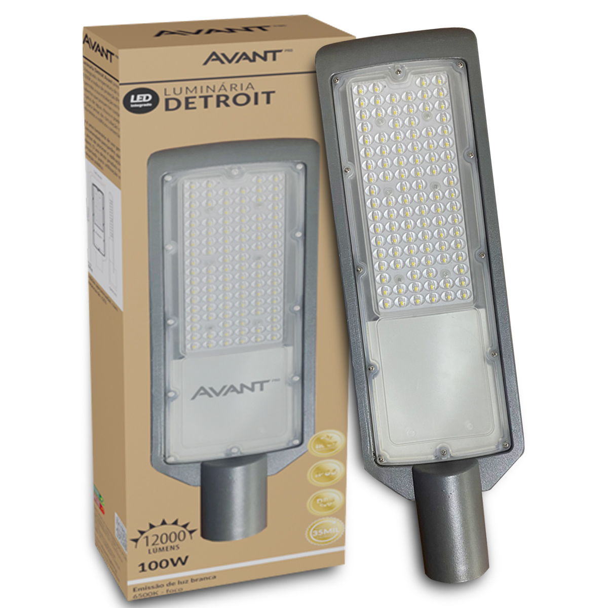 A Luminária Detroit Avant possui LED Integrado, temperatura de cor de 6500K e índice de proteção IP66 que permite a sua instalação em locais abertos que possam ter contato com jatos de água, chuva