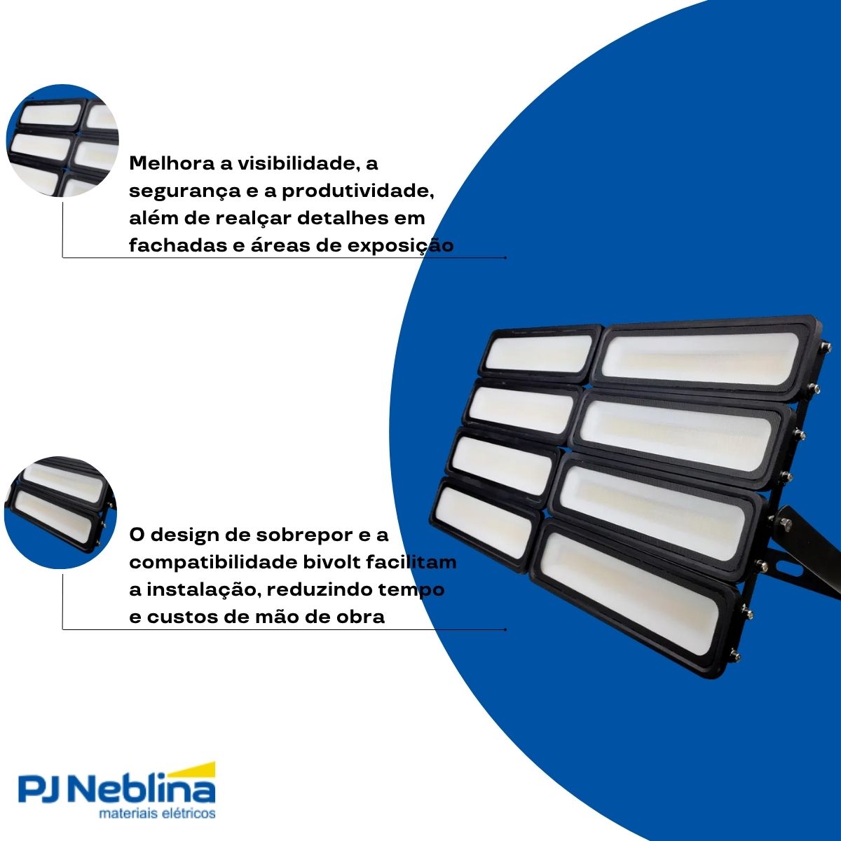 Luminária Refletor Led Facciata Sobrepor Pt 400W Bivolt 6500K Branco Frio 40000Lm Dif Vidro Temp 120G Ip66 - Avant - Código Fabricante: 917326877
