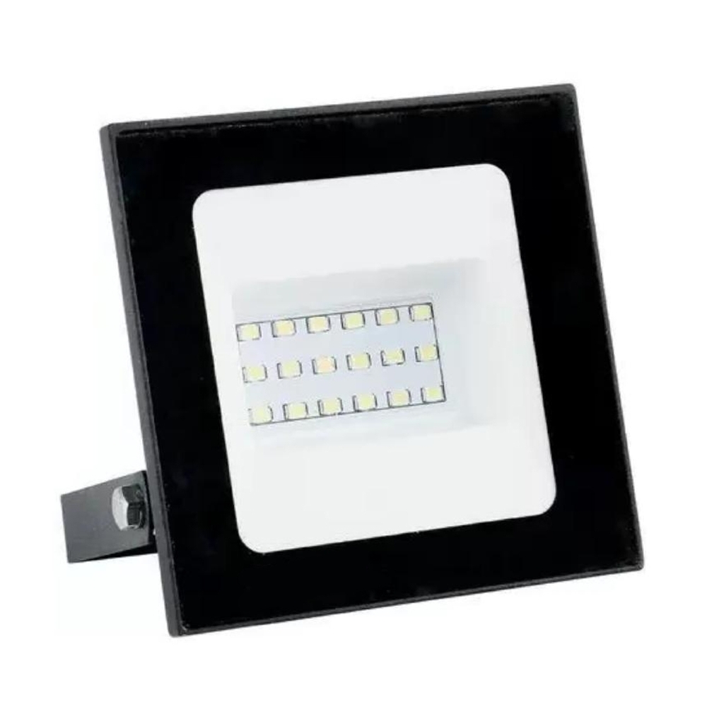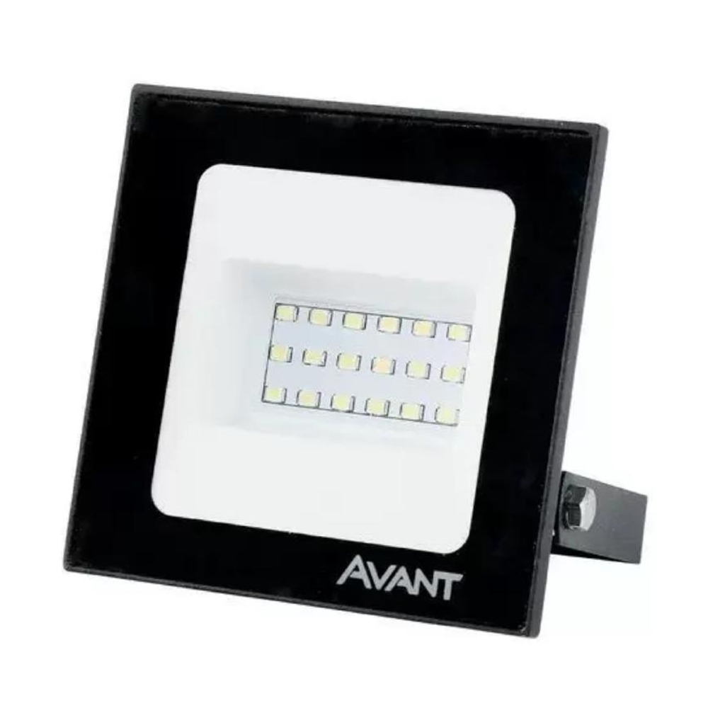 Luminária Refletor Led Retangular Externa Alumínio Preto 20W Bivolt 6500K Luz Branca 1500Lm 120G Difusor Vidro Temperado 75lm/W Ip65 Avant