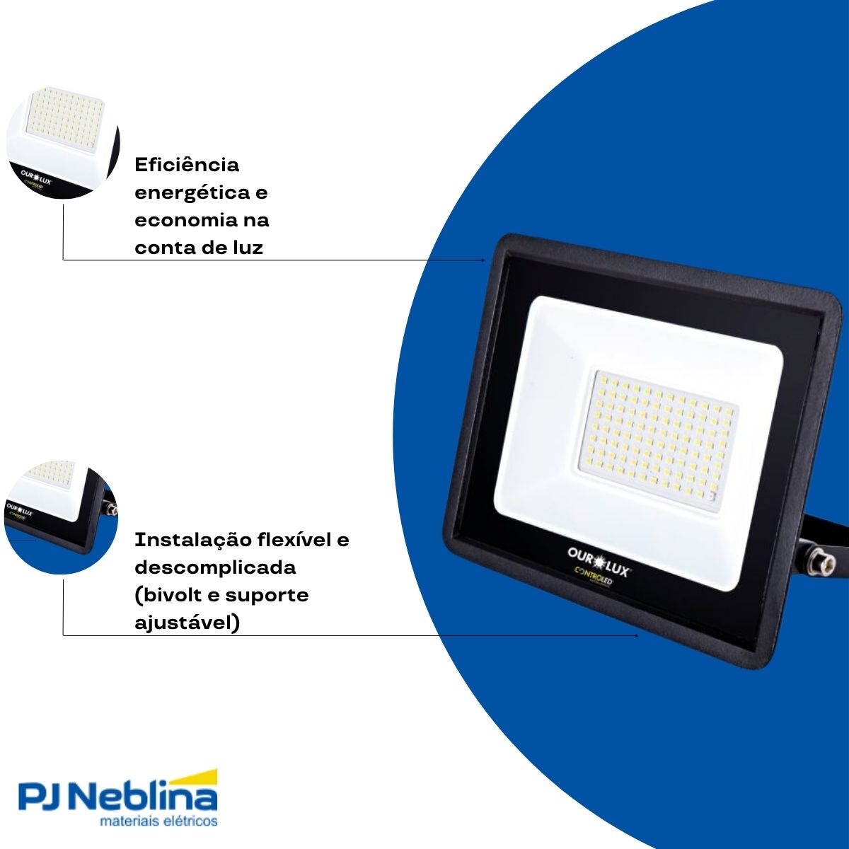 - Potência de 100 Watts, com fluxo luminoso de 6.750 lúmens.