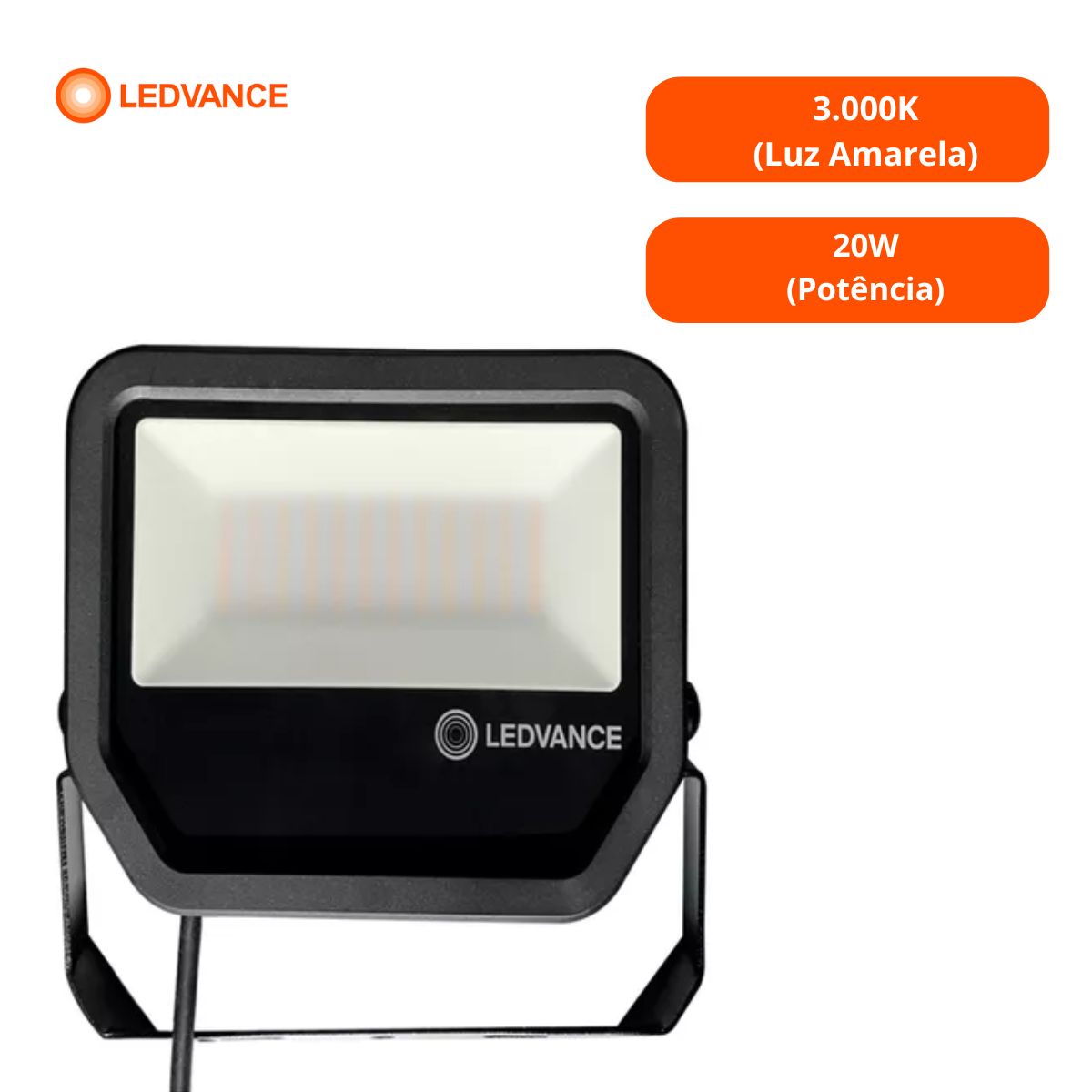 Luminária Refletor Floodlight Led Retangular Sobrepor Preto 20W Bivolt Luz Amarela 3000K 2200Lm Difusor Vidro Temperado 7016871 Ledvance