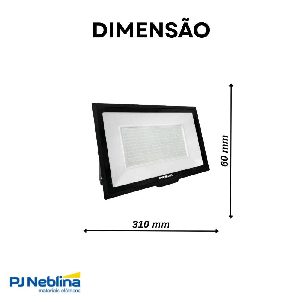 Luminária Refletor Led Retangular Sobrepor Preto 30W Bivolt 3000K Branco Quente 2400Lm Dif Vidro Temperado 110G Ip65 - Ourolux - Código Fabricante: 03271