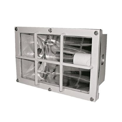 Refletor em chapa de alumínio anodizado. Lente plana de cristal temperado, fixada ao corpo refletor por meio de grade com junta vedadora. Ligação por meio de entrada rosqueada no corpo de Ø 1/2" ou 3/4" gás (a pedido, NPT).