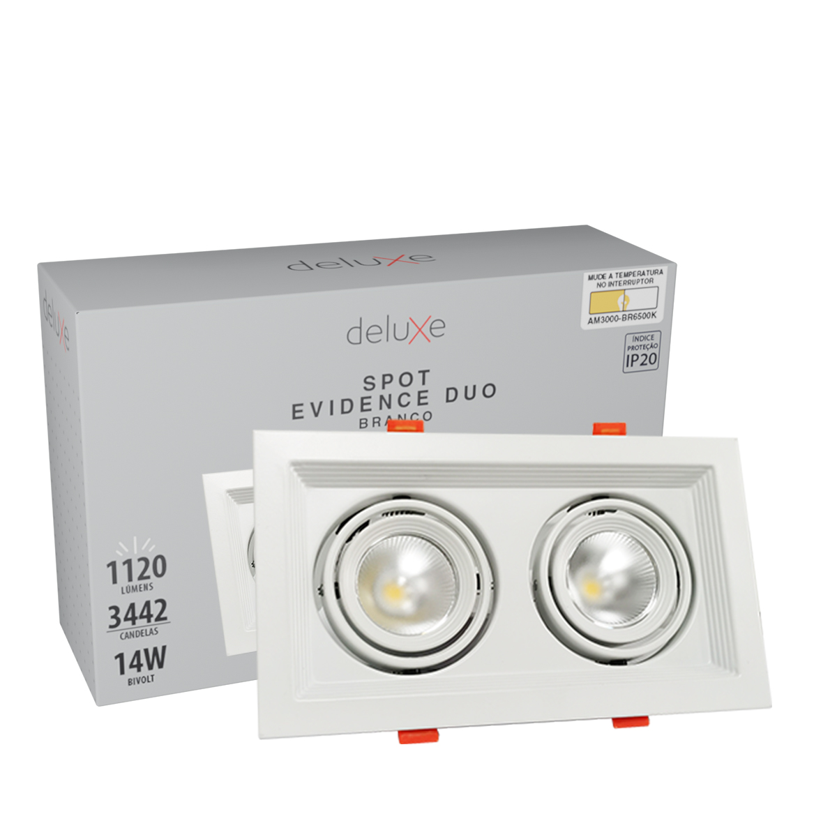 Luminária Spot Led Embutir Evidence Duo Branco Fosco 14W Bivolt Luz Amarela/Neutra/Branca 3000/4000/6000K 1120Lm Difusor Policarbonato - Avant
