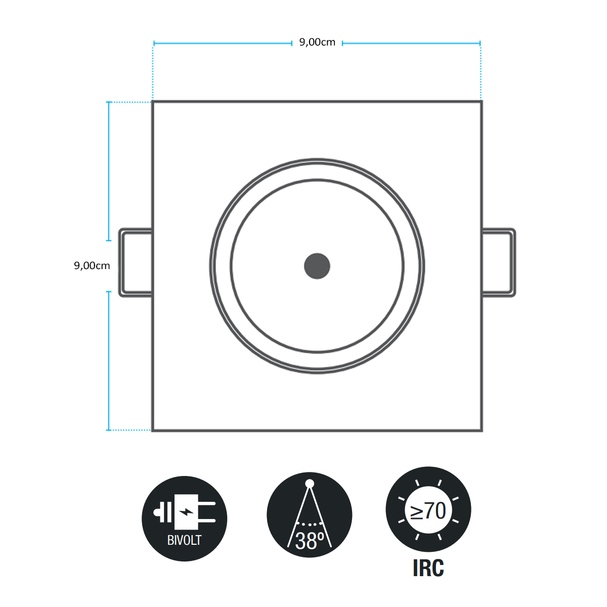 Luminária Spot Led Embutir Quadrado Branco 5W Bivolt Luz Neutra 4000K 400Lm Foco Direcionável - Avant