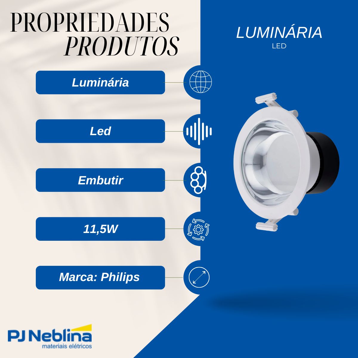 - Potência de 11,5W, oferecendo excelente eficiência energética.