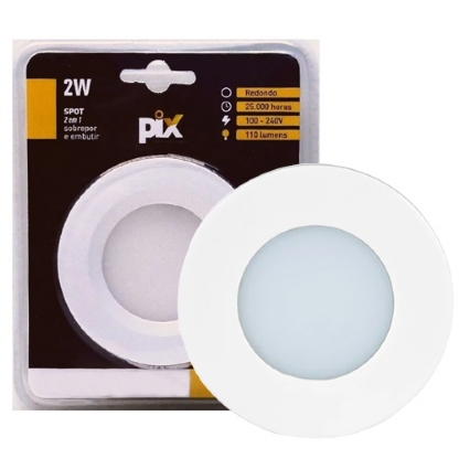 Luminária Spot Led Embutir/Sobrepor Redonda Branco 2W Bivolt 6500K Luz Branca 110Lm Pix
