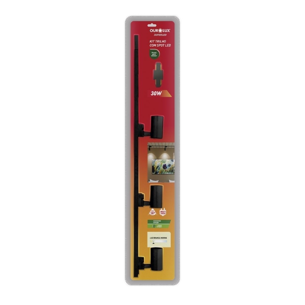 Luminária Spot Led Trilho Preto 3X10W Bivolt 3000K Branco Quente 2520Lm - Ourolux - Código Fabricante: 03784