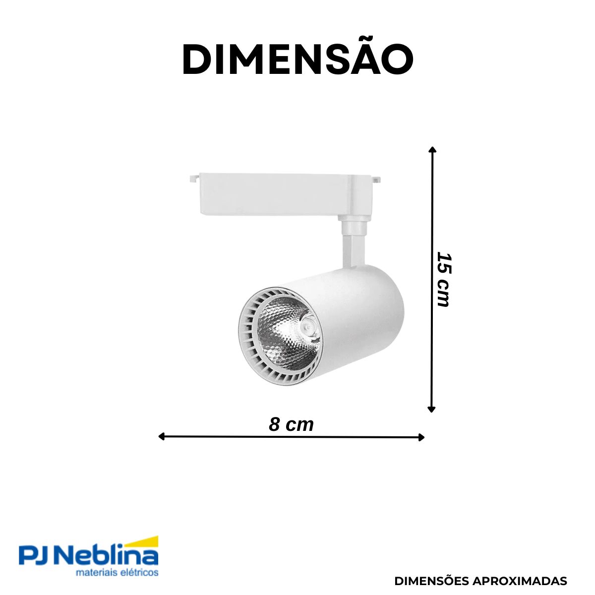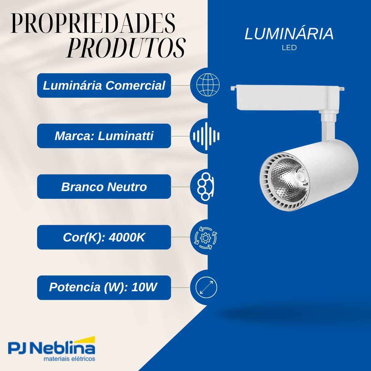 Luminária Spot Led Trilho Redondo Branco 10W Bivolt 4000K Branco Neutro 700Lm Foco Direcionável (Facho 23G) - Luminatti - Código Fabricante: LM1208