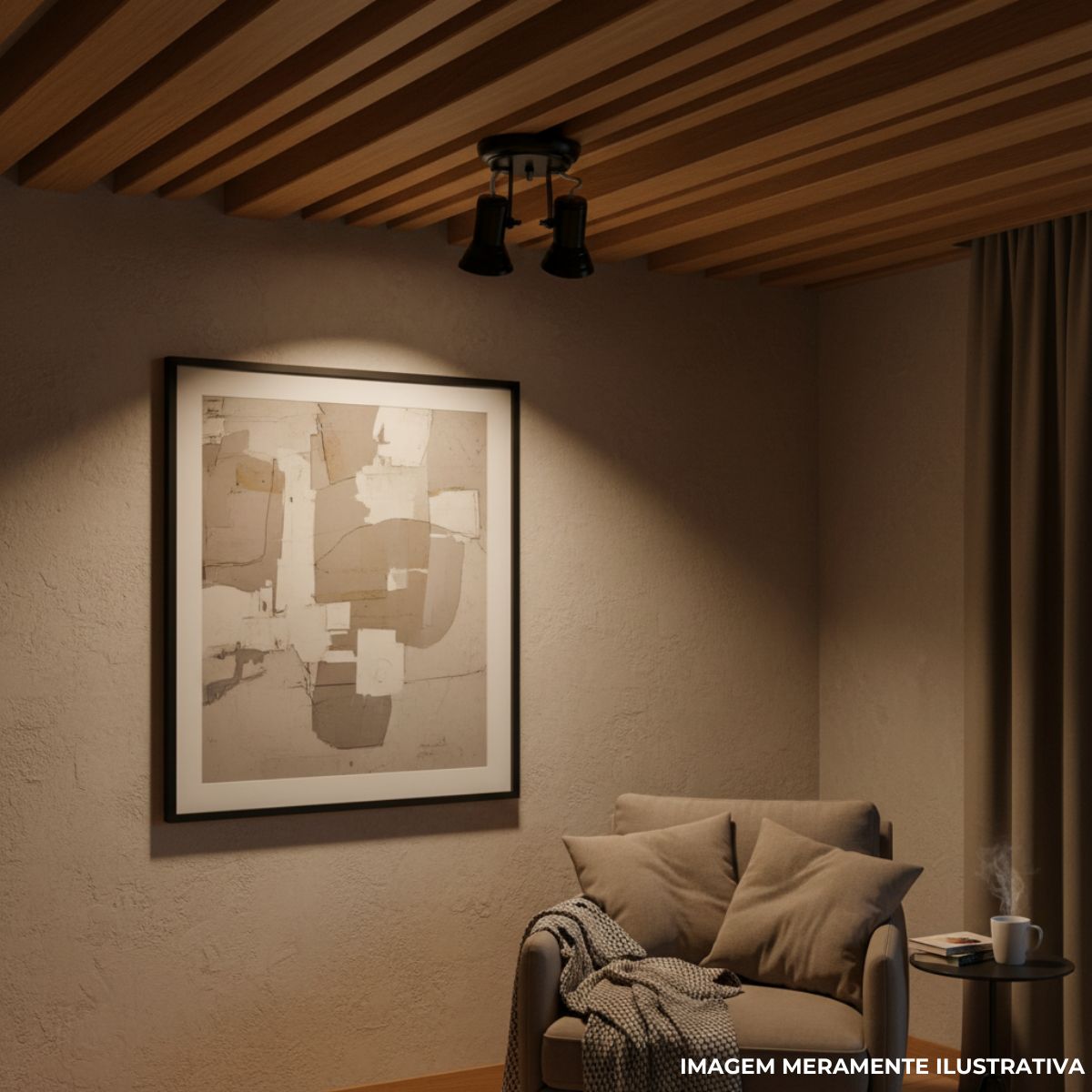 - Iluminação direcionada para quadros e objetos