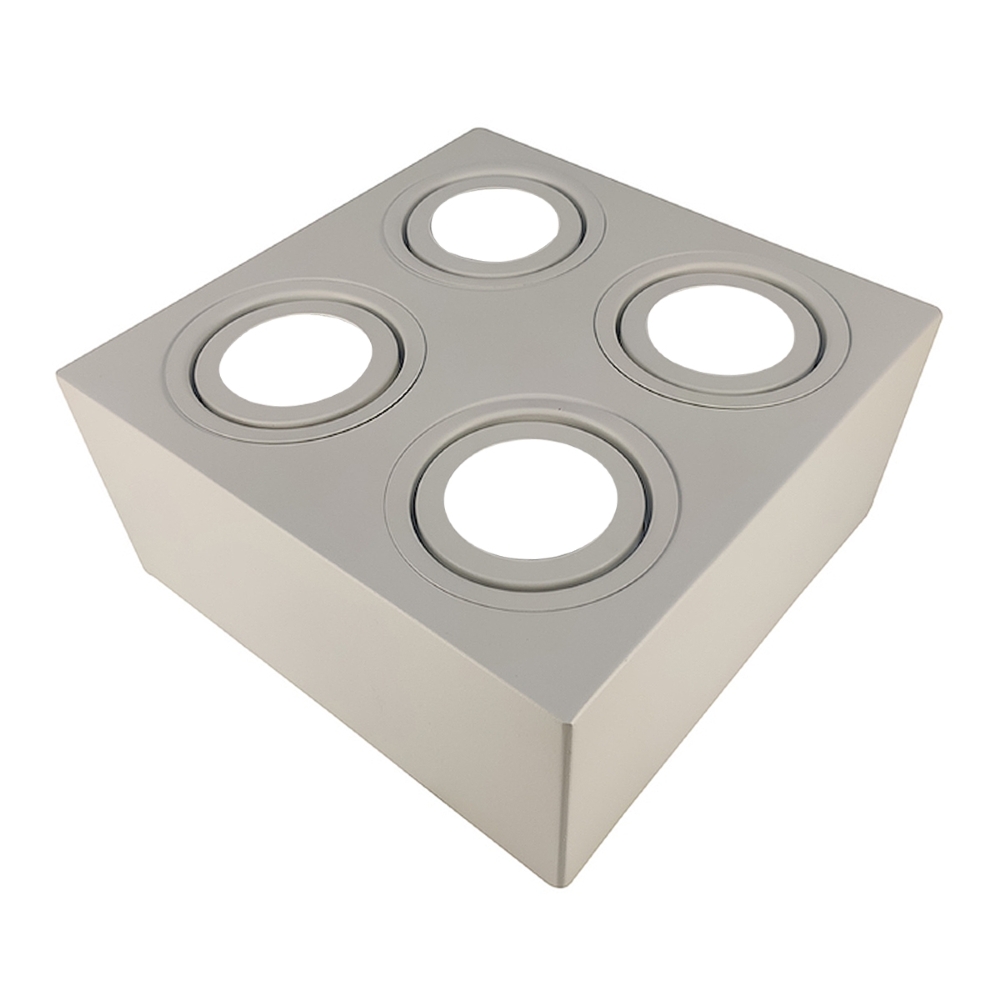 Luminária Comercial Spot Sobrepor Quadrado Em Alumínio Branco Para Lâmpada Par20 4X50W E27 250x250x120mm Facho Direcionável Golight