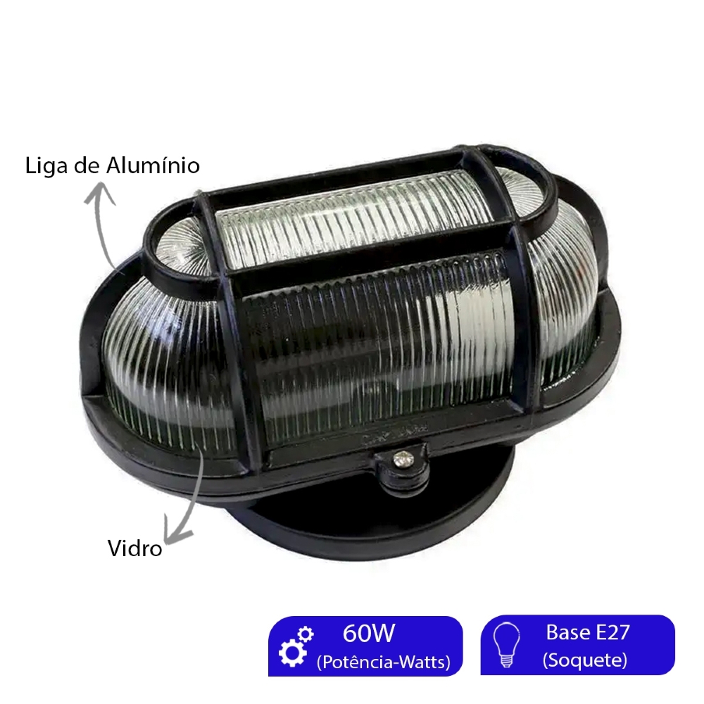 Luminária Tartaruga Externa Preto E27 60w Com Difusor Vidro 00501 - FM Lustre