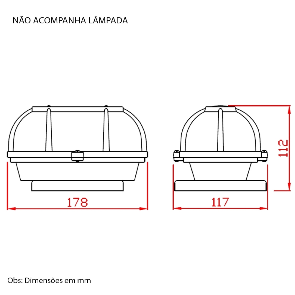 Luminária desenvolvida para comportar uma lâmpada com comprimento máximo de 110 mm.