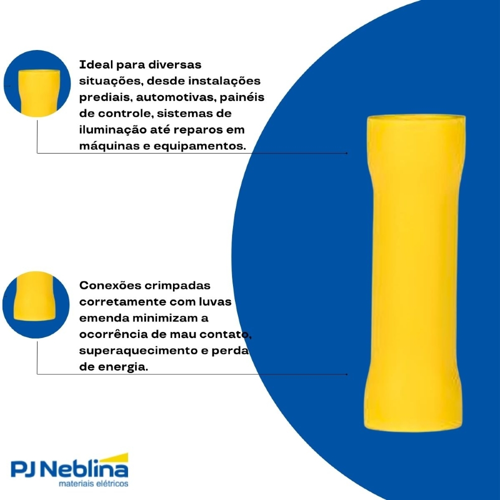 Luva Emenda 4,00-6,00Mm (12-10Awg) Total-Isolado Amarelo Pvc - Axt - 100 Unidades - Código Fabricante: E-1014