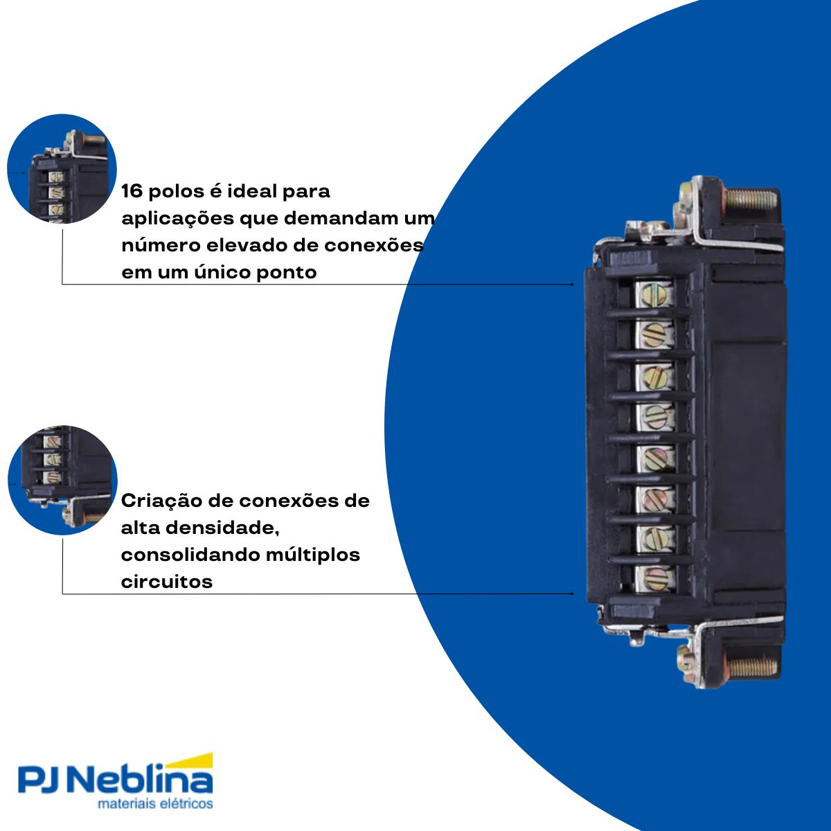 - Material Isolante: Geralmente fabricado em termoplástico de engenharia, oferece excelente isolamento elétrico e resistência a condições industriais.