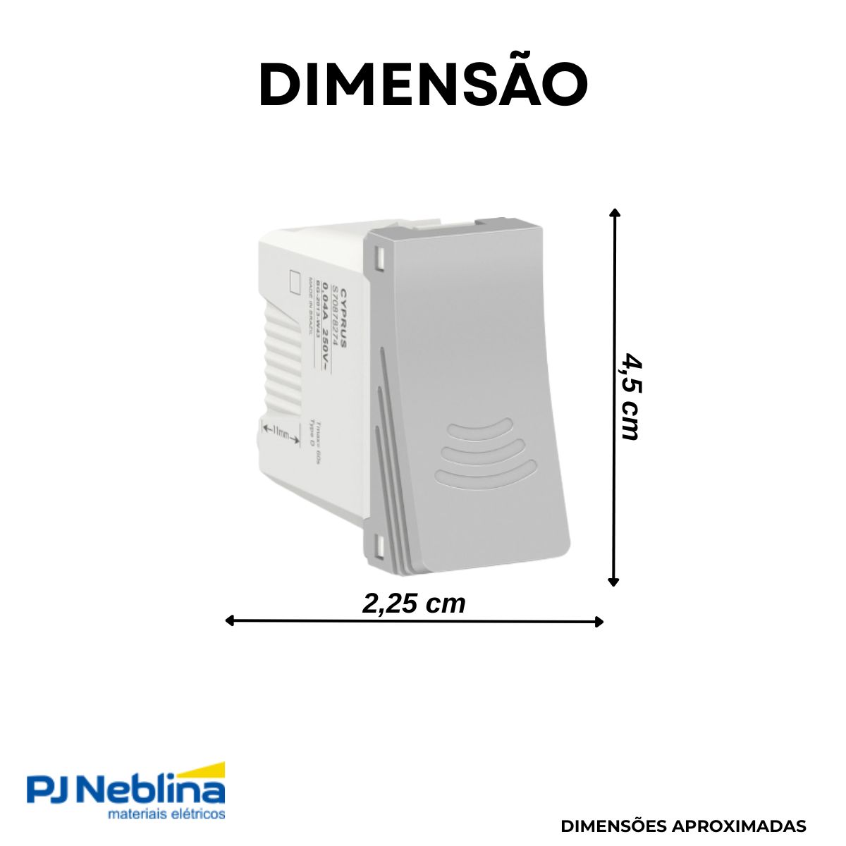 - Ocupa apenas 1 módulo em placas ou suportes.