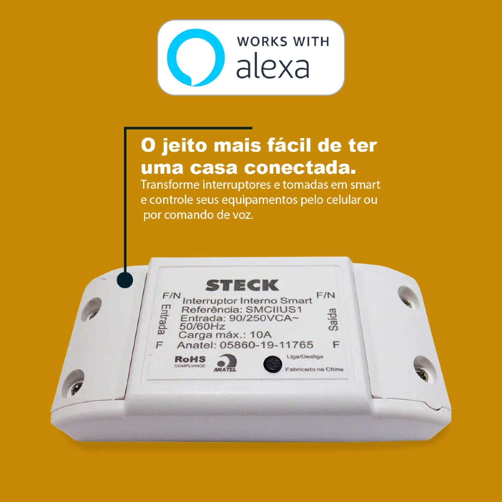 A Steck é uma marca referência no desenvolvimento e fornecimento de materiais elétricos para os ramos industrial,comercial e residencial. Possui mais de 50 linhas de itens fabricados com a mais alta qualidade e durabilidade, se tornando líder de vendas e a primeira indicação dos profissionais que trabalha, na área elétrica. A Steck te oferece a melhor solução para suas necessidades, o Módulo Interruptor Interno Wi-Fi Branco Compatível Com Alexa Casa Inteligente.