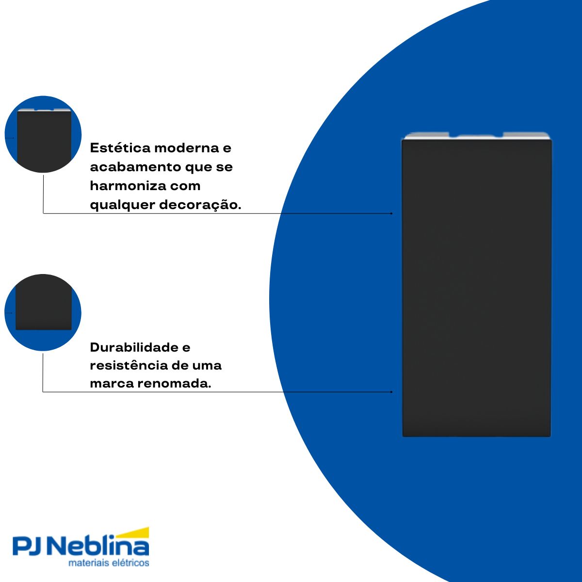 - Instalação em ambientes comerciais e residenciais com necessidades de 16A e estética preta.